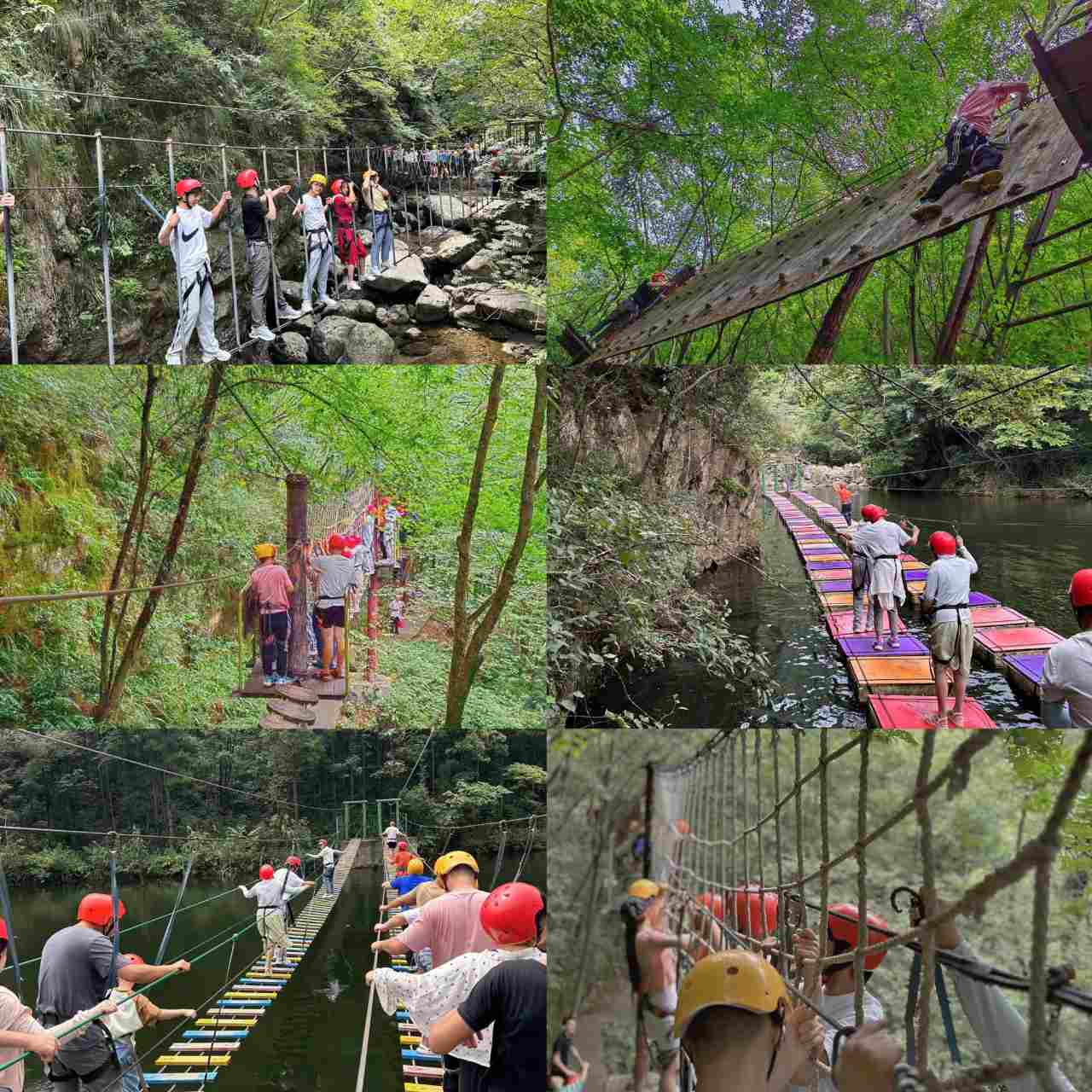 當(dāng)然不止有驚險刺激的漂流,我們還帶大家體驗了集水上、叢林、高空為一系列的空中漫步樂園,看得出來每一位小伙伴都十分勇敢呀。大家合作的也十分愉快,這都是平時日積月累的默契帶來的~